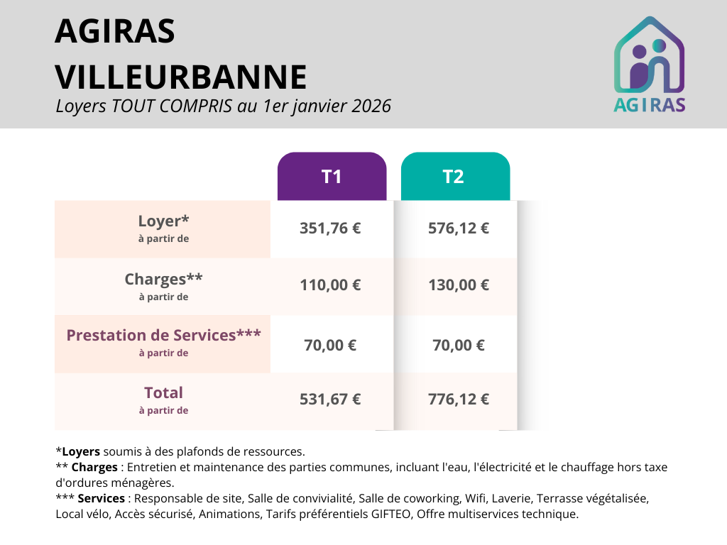 Les tarifs des résidences AGIRAS